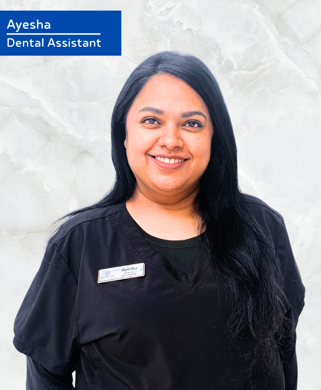 Aysha graduated with a BDS degree from the Bangalore Institute of Dental Sciences in 2019 and recently passed the INBDE, with plans to pursue her Doctorate of Dental Surgery (DDS). She is HARP Certified in Canada as of December 2024.