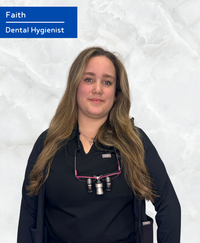 Faith graduated from the Canadian National Institute of Health in 2025 with an Advanced Diploma in Dental Hygiene. Originally from New Brunswick, she brings a warm East Coast friendliness to every patient interaction, treating everyone just like a friend. Faith is passionate about providing gentle, patient-centered care and helping clients feel comfortable and confident during their visits. Outside the clinic, she enjoys playing hockey and baseball, spending time outdoors, fishing, and getting out on the boat.